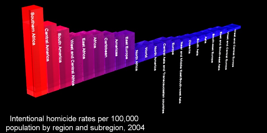 ![]() Intentional homicide rates per 100,000 population by region and subregion, 2004